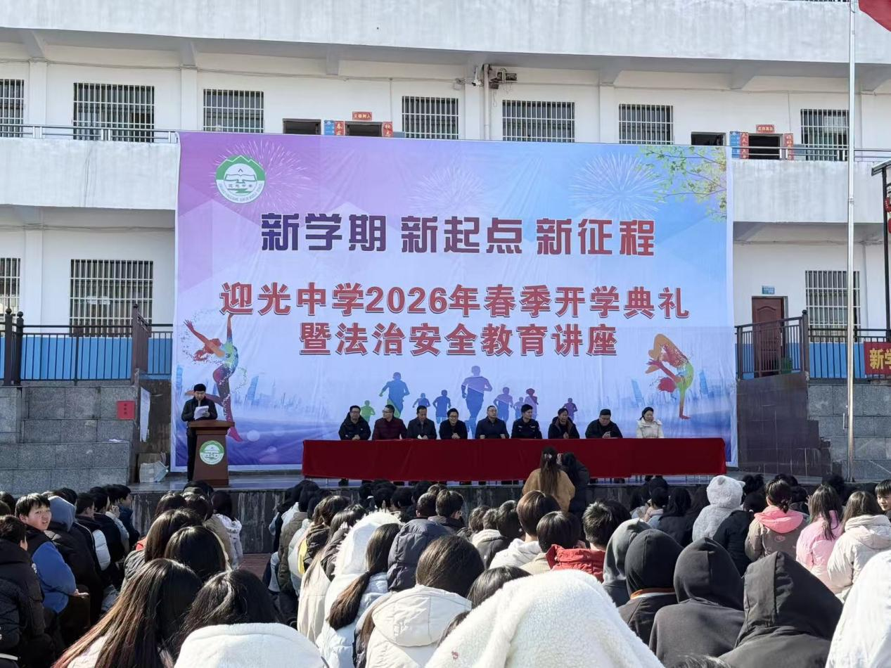 湖南教育网 邵阳讯(通讯员:陈佳佳 杨菲) 3月10日下午3时28分,新邵县迎光乡中学全体师生齐聚校园运动场,举行2026年春季开学典礼。此次典礼由学校教导处主持,融励志奋进、安全教育、表彰先进于一体,为新学期教育教学工作拉开序幕。