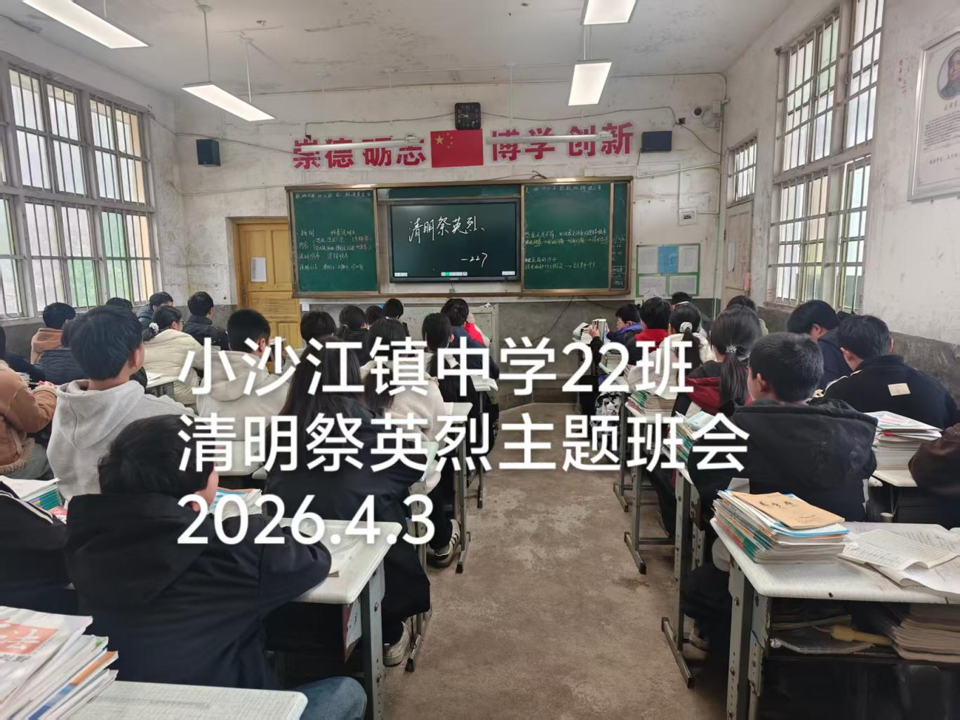 清明怀先烈 青春勇担当--隆回县小沙江镇中学开展“清明祭英烈”主题班会 湖南教育网 邵阳讯(通讯员:邹汝婷)又是一年清明时,春风落日寄哀思。为缅怀革命先烈,传承红色精神,引导同学们铭记历史、珍惜当下,4月3日上午小沙江镇中学开展了清明祭英烈主题班会,让红色基因在校园里代代相传。