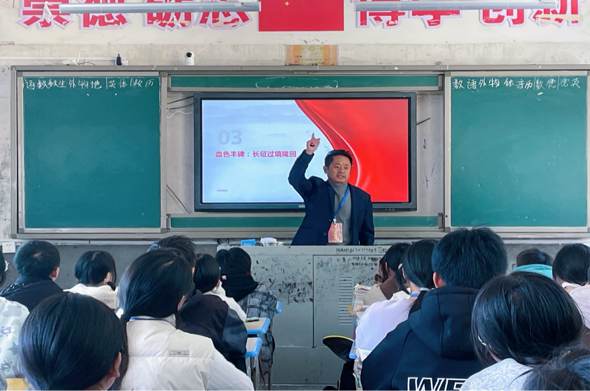 ![]() 课堂上,孙老师以“故事+细节”串联革命岁月:“星火初燃”里,王春华扮货郎藏情报于扁担,哨卡前打翻货担护下17名同志;“雷霆怒涛”时,他展出借据残片复刻图,重现500农民举红缨枪护卫、欧阳秋曝焚128张借据的场面,更细数“三打魏家塅”中妇女队用辣椒粉熏碉堡的“草根智慧”。 ![]() “血色丰碑”篇章里,鸭田战斗的老照片前,谭家述烧火棍画布防图、猎户断敌退路、农妇裹热饭冒雪送5里的细节,让教室彻底安静;“青山忠魂”中,游步瀛带伤指挥、罗卓云刻“真理”就义的英烈事,惹得同学红了眼眶。 ![]() 下课前,孙老师出示煤油灯图片:“当年红军靠它照亮长征路,如今这盏‘灯’传到了你们手上。”225班学生在笔记本上写道:“原来长征不是遥远的故事,就在我们脚下的土地上。” 据悉,这堂红色课是小沙江镇中学“红色课堂进班级”系列活动的重要一环。后续学校将营造红色氛围,鼓励学生走进红色教育基地,在实地探访中延续红色记忆,让长征精神扎根成长之路。 责编 曾爱国 审核 岳卫东 |