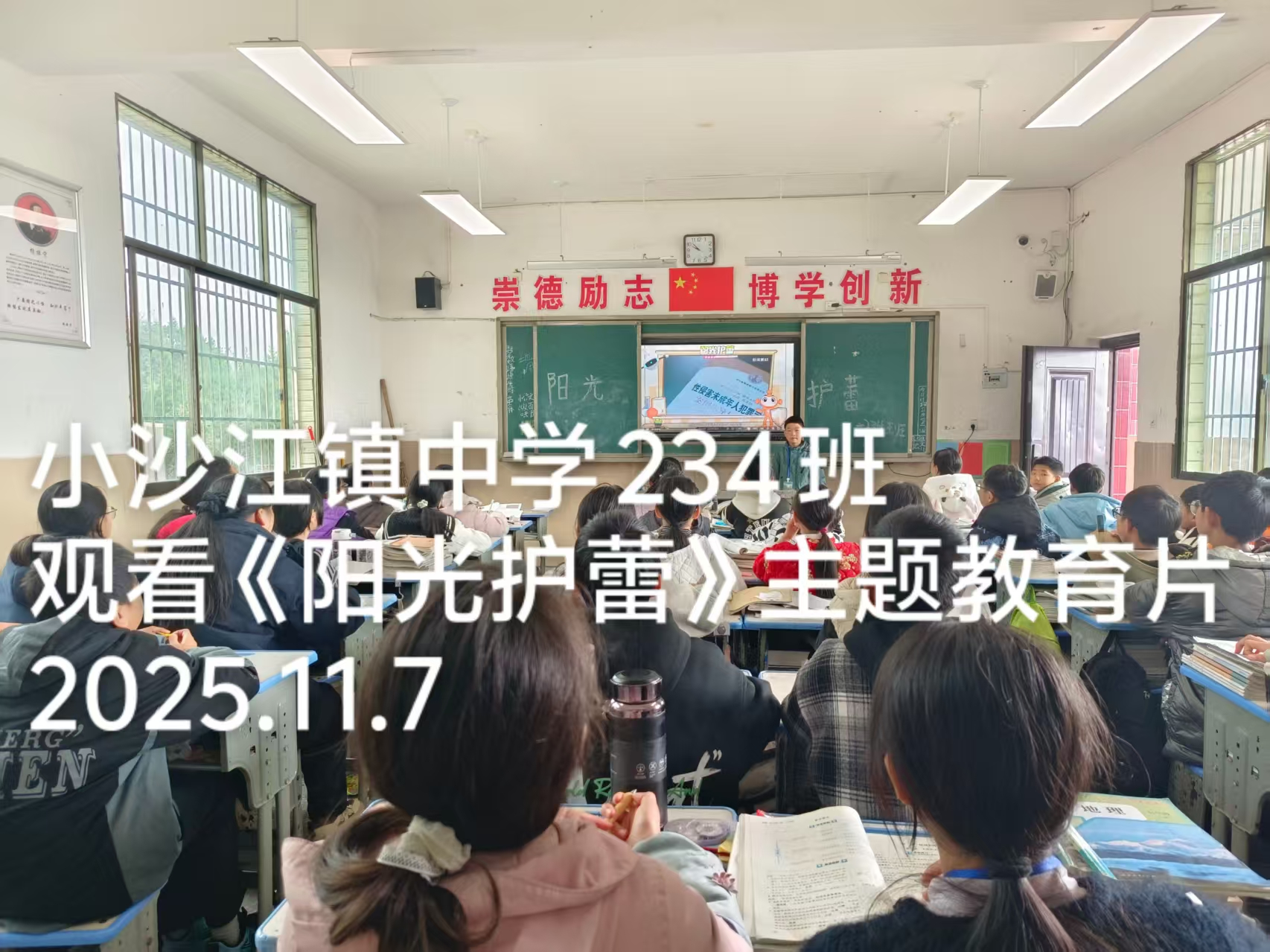 小沙江镇中学组织全体学生观看《阳光护蕾》专题教育片