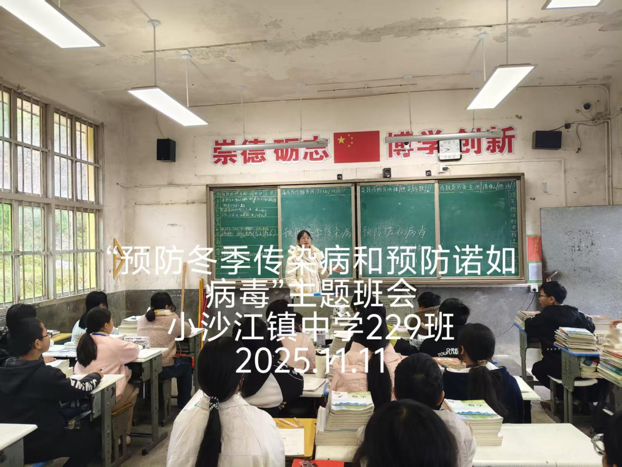 隆回县小沙江镇中学开展了预防冬季传染病和诺如病毒主题班会