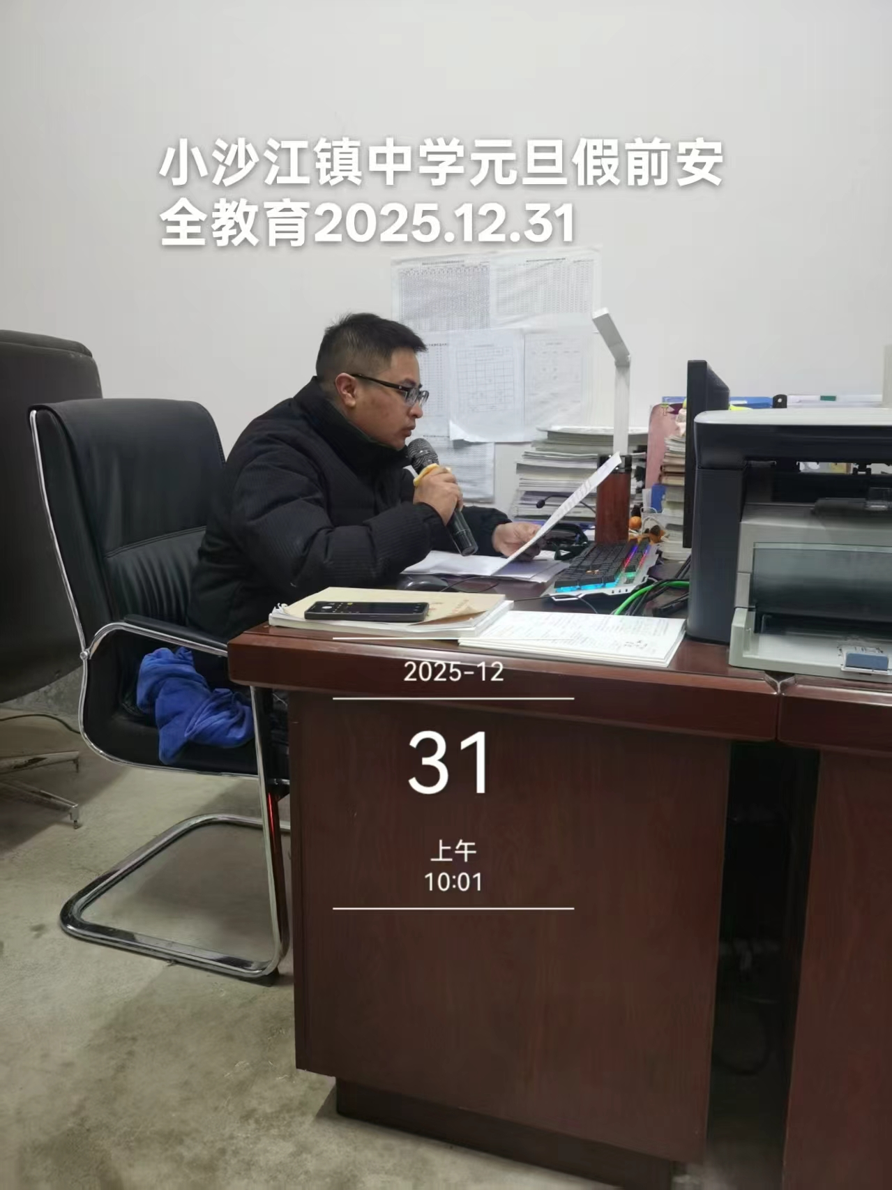 ——小沙江镇中学开展元旦假前安全教育广播宣讲 湖南教育网 邵阳讯(通讯员:谭黎 伍澜涛)12月31日上午,小沙江镇中学通过校园广播开展元旦假期集中安全教育,因天气影响,教育形式由室外集会调整为室内广播宣讲。政教罗校长担任主讲,全体学生在班级内同步收听。