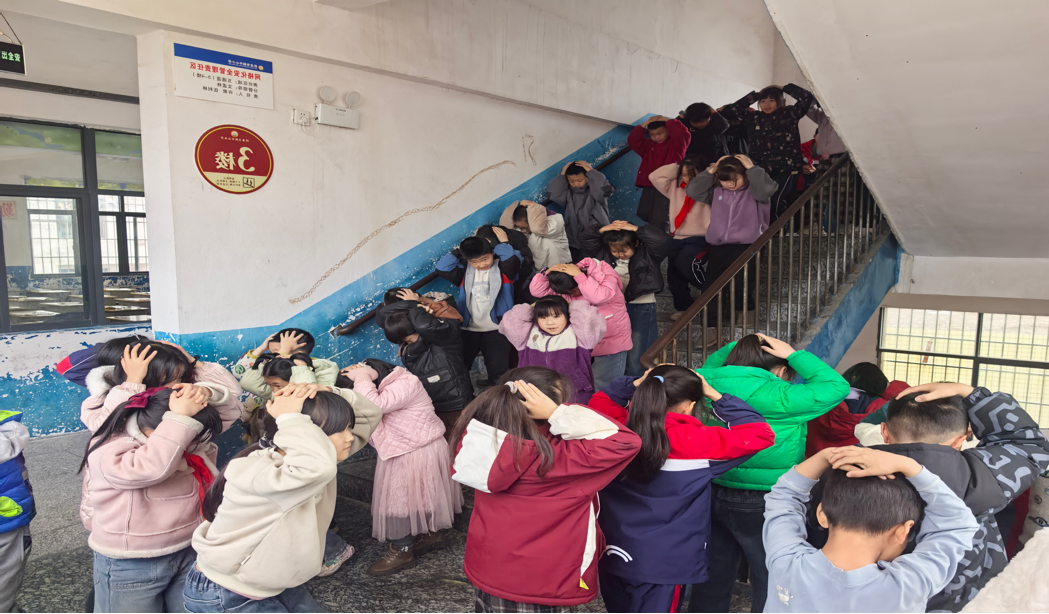 以练筑防,安全“童”行——新宁县回龙寺镇中心小学开展地震逃生疏散演练
