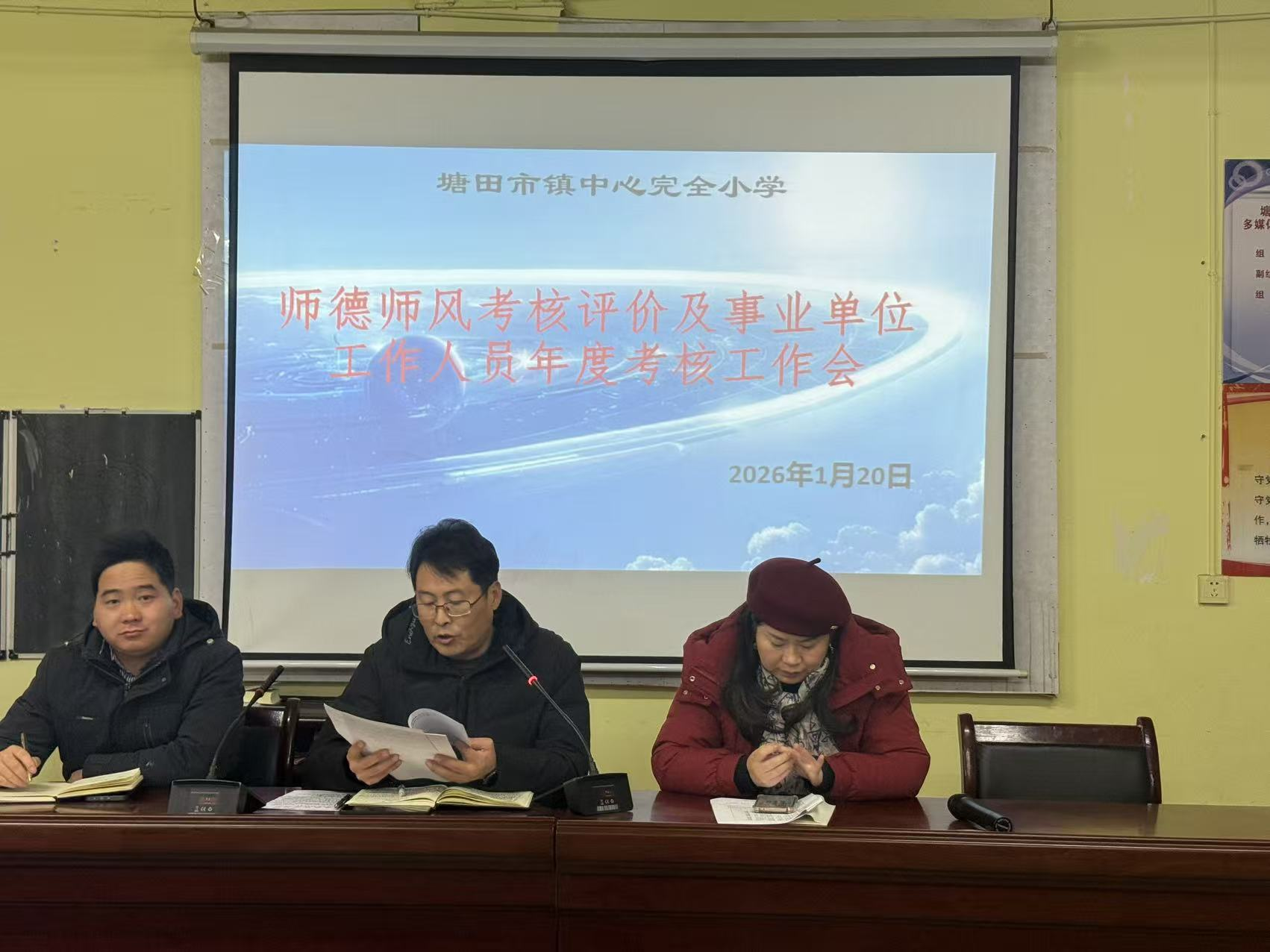 文章导读:邵阳县塘田市镇中心完全小学召开师德师风考核评价暨事业单位工作人员年度考核工作专题会议 湖南教育网 邵阳讯(通讯员:莫楚)2026年1月20日下午,邵阳县塘田市镇中心完全小学在学校多媒体教室组织召开了2...
