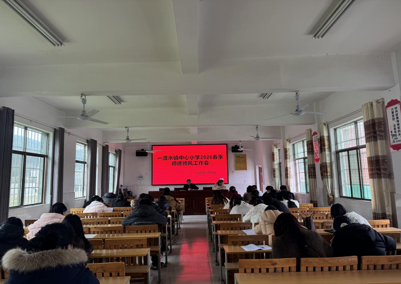 师德师风培训会 湖南教育网 邵阳讯(通讯员 肖雨莹 陈秋) 为进一步加强教师队伍建设,全面提升全体教师的师德修养与业务水平,2026年3月4日下午,一渡水镇中心小学召开了师德师风专题培训会,全体教职工参会。