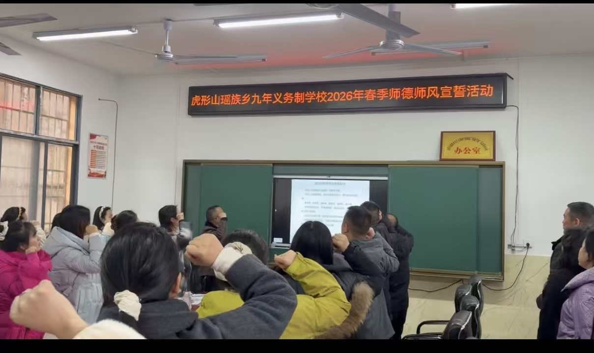 文章导读:虎形山瑶族乡九年义务制学校举行2026年师德师风教育月教师集体宣誓活动 湖南教育网 邵阳讯(通讯员 阳赛刘俊) 3月17日上午,虎形山瑶族乡九年义务制学校全体教师齐聚会议室,隆重举行2026年师德师风教育...